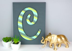 Először fessük le a táblát és a betűt a színekkel. Hagyjuk megszáradni, ezután díszítsük a betűt a dekortapasszal. Ragasztópisztollyal rögzítsük az alapra. Majd tegyük a díszünket a helyére.